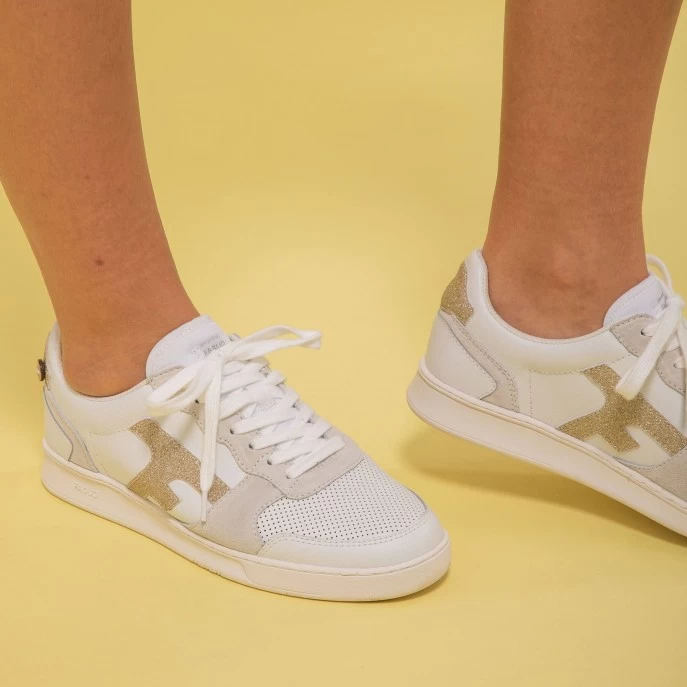 La HAZEL blanche & dorée est une basket basse inspirée des baskets des années 80. Sa semelle cousue à la tige a été pensée dans notre studio pour une durée de vie optimale. Reconnaissable grâce à son logo F sur le côté, elle est l’incontournable FAGUO à porter pour toutes les occasions.