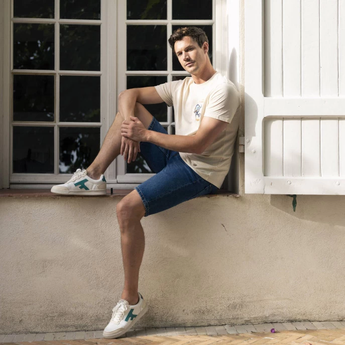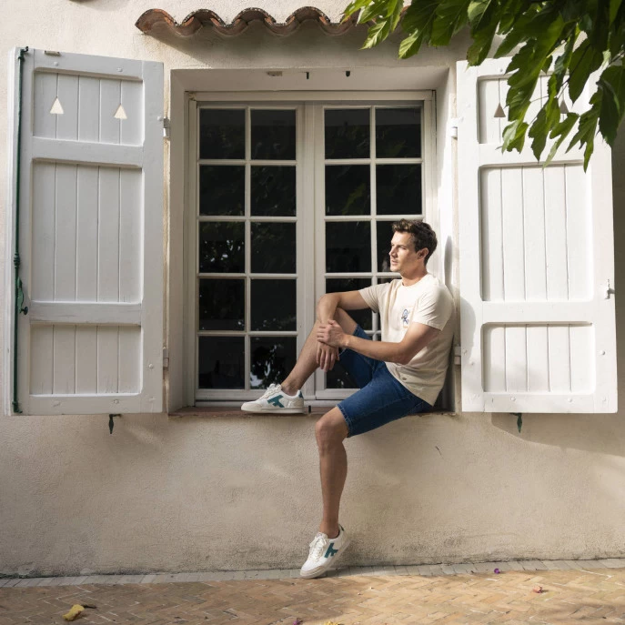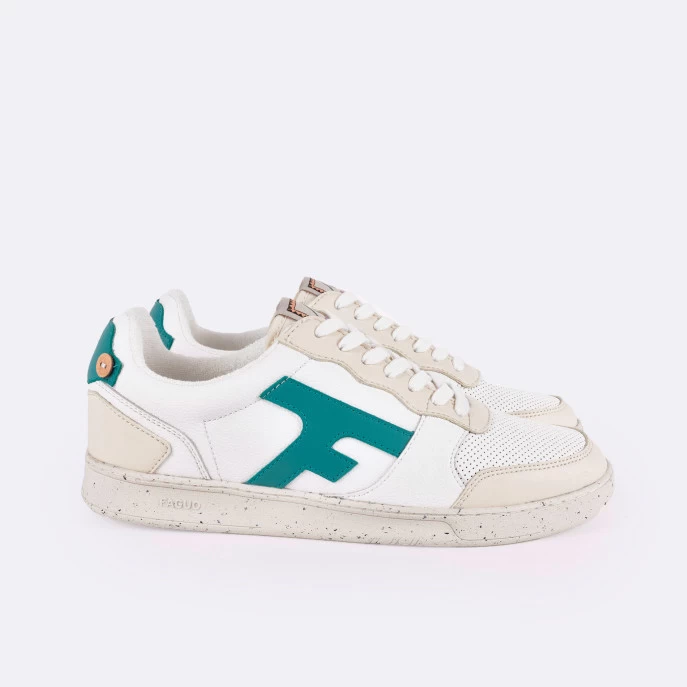 La HAZEL blanche & turquoise est une basket basse inspirée des baskets des années 80. Sa semelle cousue à la tige a été pensée dans notre studio pour une durée de vie optimale. Reconnaissable grâce à son logo F sur le côté, elle est l’incontournable FAGUO à porter pour toutes les occasions.