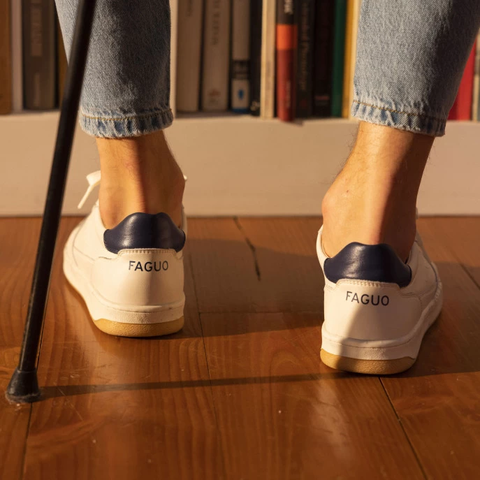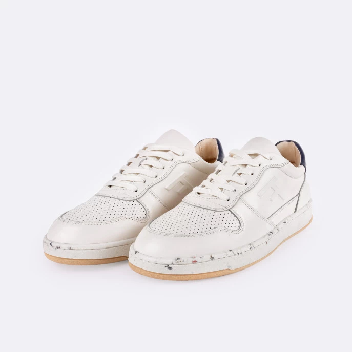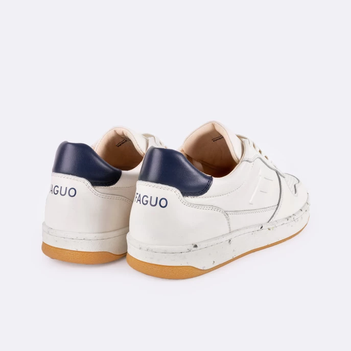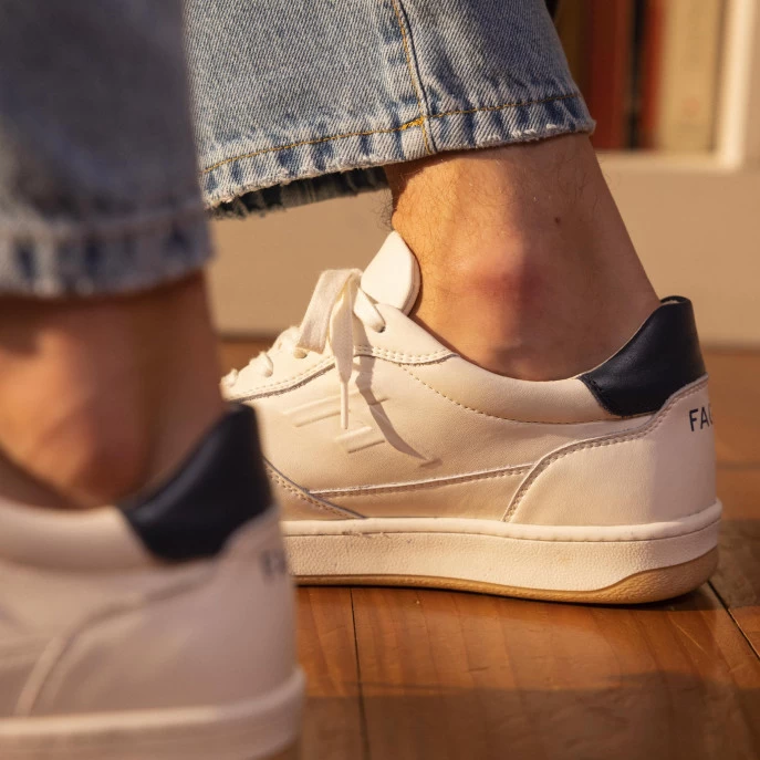 La ALDER écrue & marine est une basket en cuir citadine et innovante, fabriquée au Portugal. Sa semelle en caoutchouc synthétique recyclé contient des balles de tennis recyclées, récoltées dans des clubs de tennis près de Porto. Sa doublure en microfibre thermorégulatrice et sa semelle intérieure en mousse recyclée et liège sont un gage de confort. Faciles à porter et à assortir au quotidien les Alder réhausseront un look intemporel