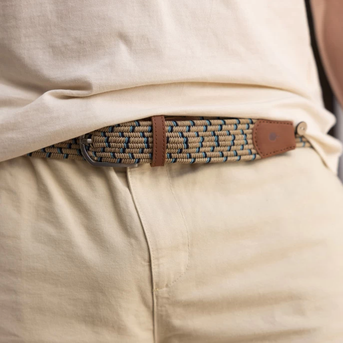 Cette ceinture tressée beige & bleu est un iconique. Elle a été pensée pour être adaptable à toutes les morphologies grâce à son élasticité. Un allié du quotidien pour aller partout : en ville ou en pleine nature !