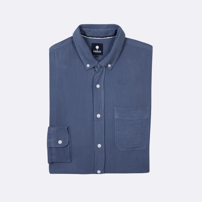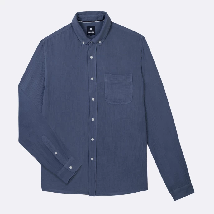 La chemise SIGNY bleu délavé est un incontournable du vestiaire masculin avec son col simple et sa poche poitrine. A porter avec un chino, pour un look décontracté.
