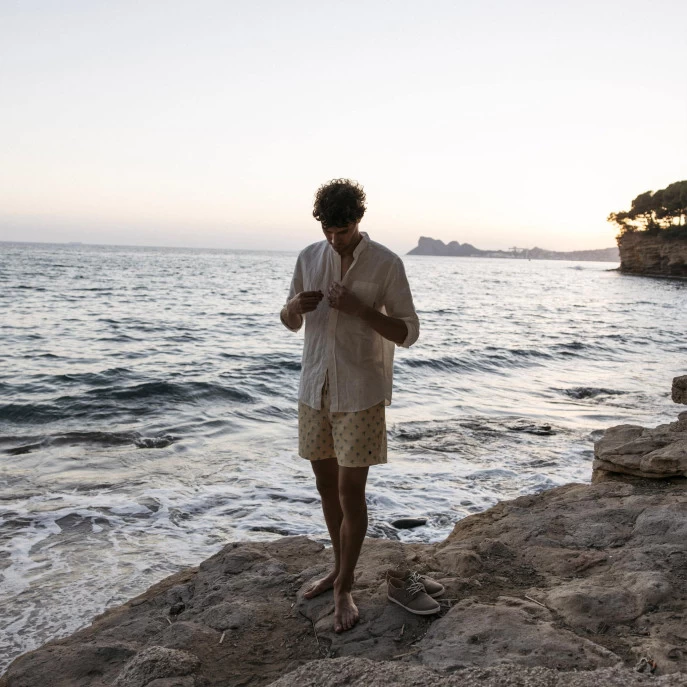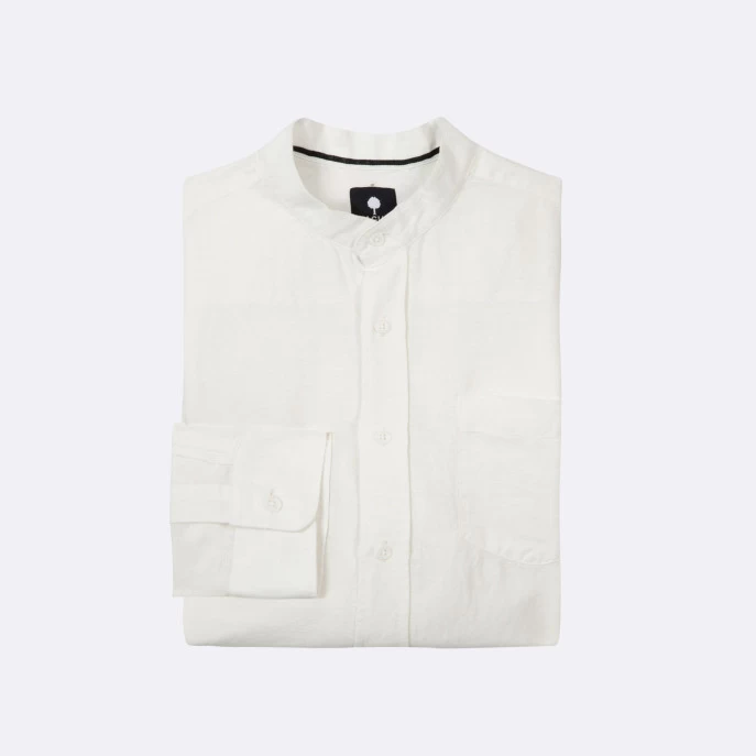 La chemise CHIAVARI écrue est un modèle décontracté grâce à sa poche poitrine et son col officier. Sa coupe est droite, idéale à porter seule fermée ou bien avec un t-shirt en-dessous.