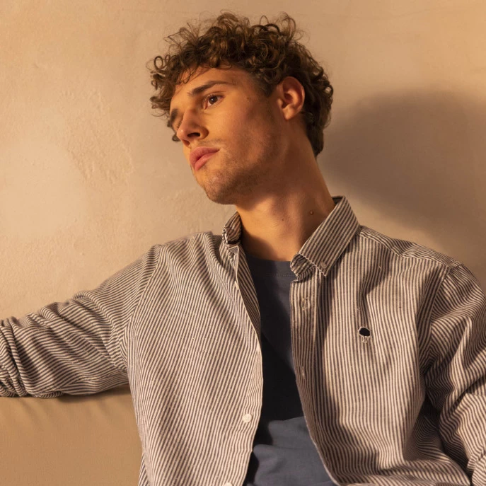 La chemise IVOY écrue & marine est un classique du vestiaire masculin grâce à son col boutonné. La coupe droite permet à cette chemise d’être portée seule ou sur un t-shirt.