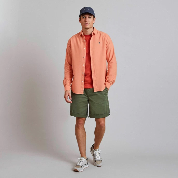 La chemise IVOY pêche est un classique du vestiaire masculin grâce à son col boutonné. La coupe droite permet à cette chemise d’être portée seule ou sur un t-shirt.
