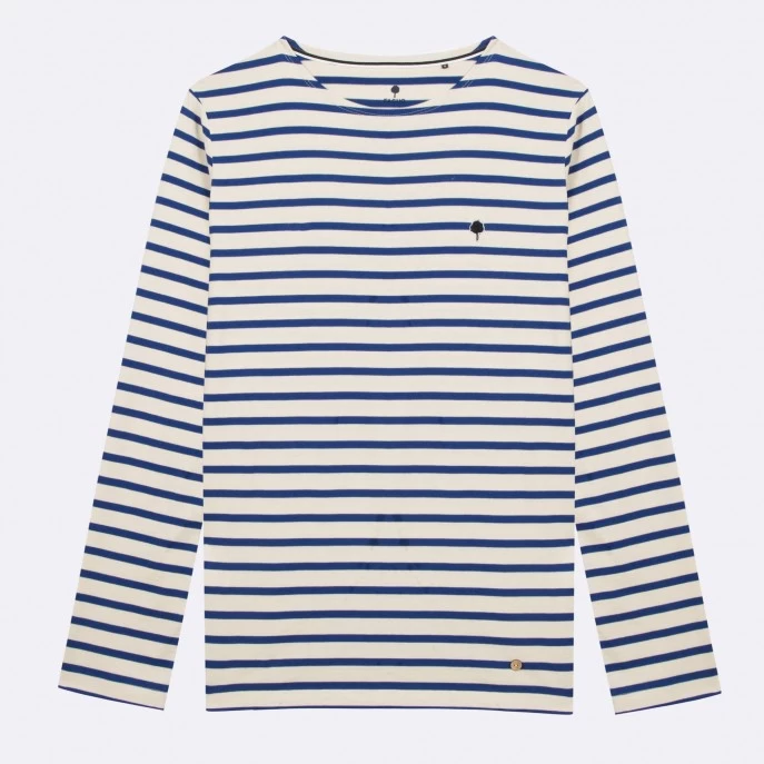 La marinière AUBRAC écrue & bleue, est un incontournable du vestiaire masculin. Son col est légèrement échancré sur les côtés pour reprendre les codes de la marinière classique. Idéale avec un short ou un chino, pour les soirées fraîches d’été.