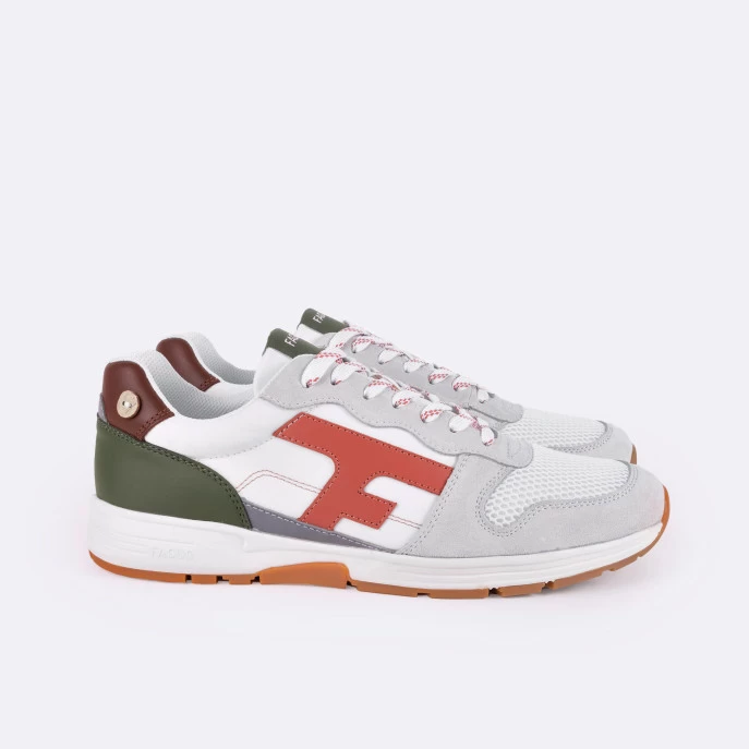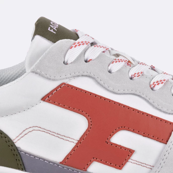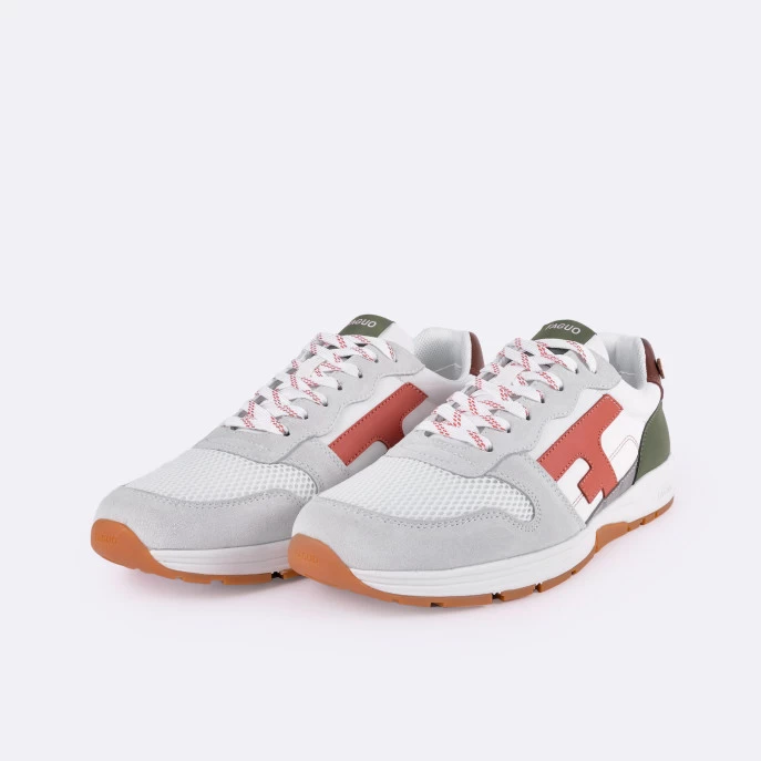 La OLIVE blanche & terracotta est une running lifestyle, urbaine et casual. Le studio FAGUO a conçu la technologie de semelle Flexway qui dispose de deux points de flexion Ă l’avant qui permettent de suivre le mouvement du pied lors de la marche. Le modèle est donc lĂ©ger et très confortable.