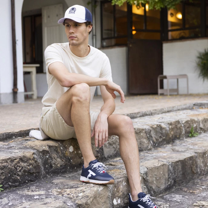 La OLIVE TPU marine & rouge est une évolution du modèle OLIVE. Le studio FAGUO a conçu la technologie de semelle Flexway qui dispose de deux points de flexion à l’avant qui permettent de suivre le mouvement du pied lors de la marche. Sa tige en mesh recyclé et empiècements en TPU est gage de légèreté et de confort. A assortir à votre tenue pour un look décontracté et tendance.