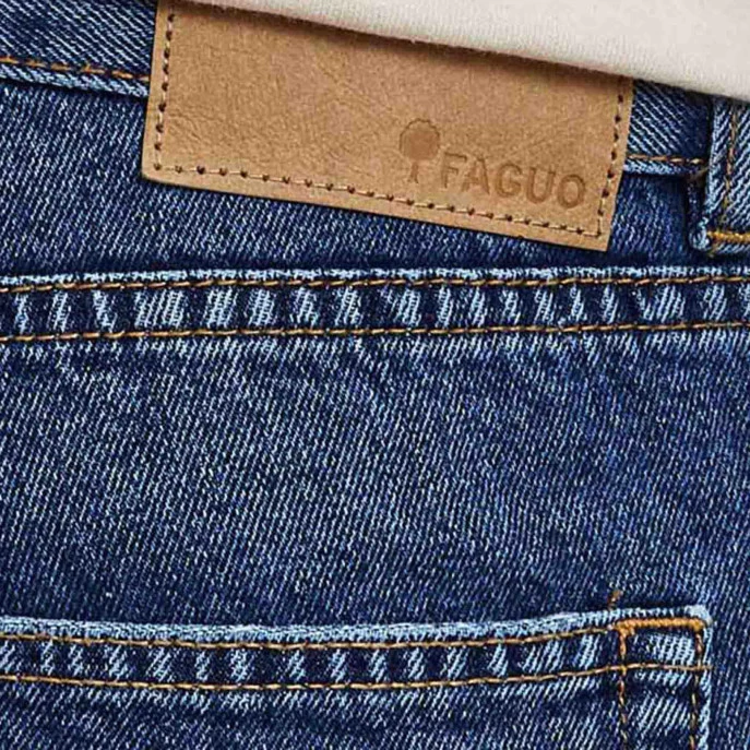 Les shorts en jean FAGUO sont l’aboutissement d’un projet circulaire depuis sa matière première jusqu’au produit fini. Pour réduire son impact carbone, ses matières recyclées proviennent de chutes industrielles réutilisées. Les boutons et rivets sont amovibles pour pouvoir recycler facilement ce jean. Ils sont consignés en boutiques FAGUO.