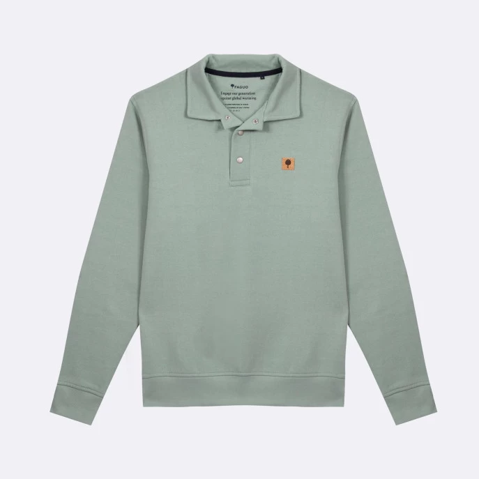 Le sweatshirt MONTGE vert clair est inspiré de l’univers « college ». Ce polo détourné, reprend le col et la patte de boutonnage d’un polo, tout en étant réalisé en molleton gratté. Pour un look sportswear, à porter avec un jean et des baskets.