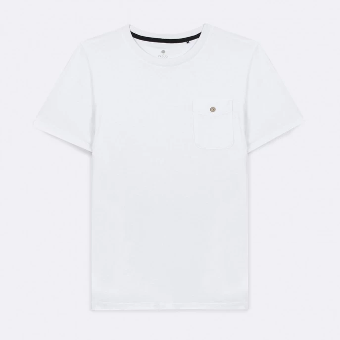 Le t-shirt OLONNE blanc, à col rond, a été pensé par notre studio comme un incontournable du vestiaire, avec sa poche poitrine. Sa coupe est droite et classique.