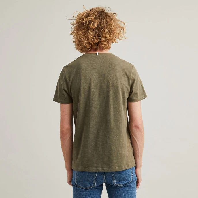 Le t-shirt OLONNE kaki, à col rond, a été pensé par notre studio comme un incontournable du vestiaire, avec sa poche poitrine. Sa coupe est droite et classique.