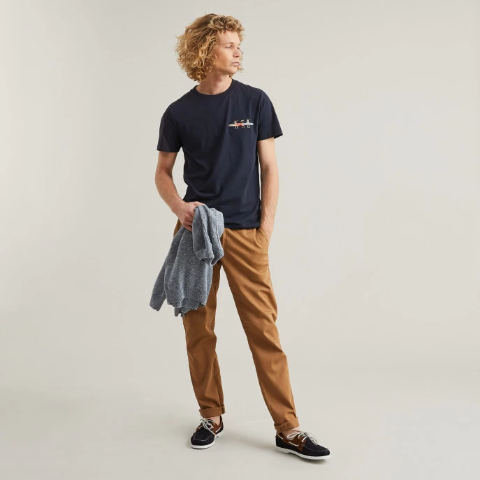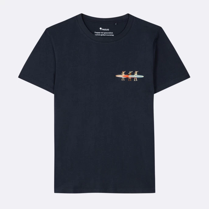 Le t-shirt ARCY bleu marine avec une broderie surfeur mexicain est un modèle iconique de FAGUO. Réalisé en jersey de coton, il est confortable et facile d’entretien. Sa coupe est droite et classique.