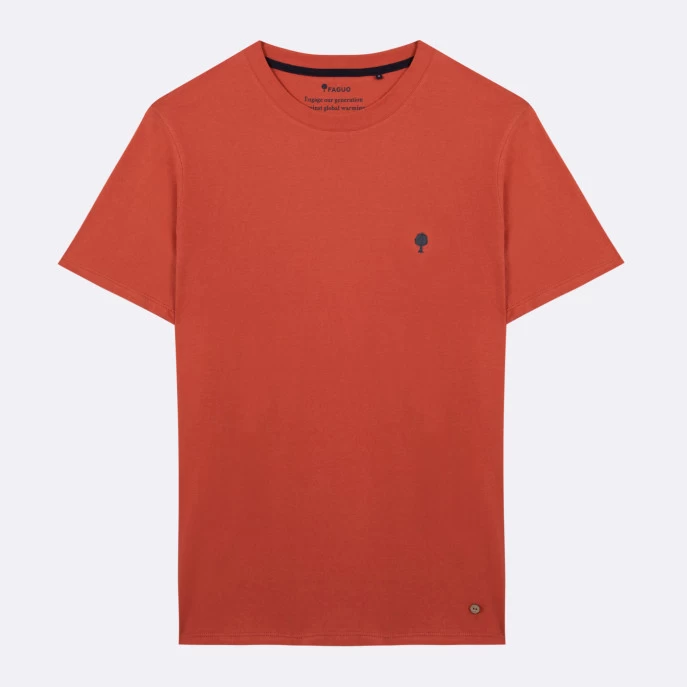 Le t-shirt ARCY terracotta broderie arbre, à col rond, est un modèle iconique Faguo. Réalisé en jersey de coton, il est confortable et facile d’entretien. Sa coupe est droite et classique.