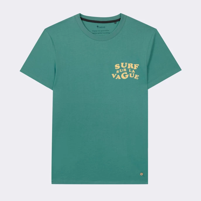 Le t-shirt ARCY turquoise surf sur la vague, à col rond, est un modèle iconique Faguo. Réalisé en jersey de coton, il est confortable et facile d’entretien. Sa coupe est droite et classique.