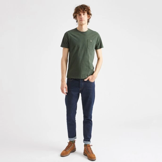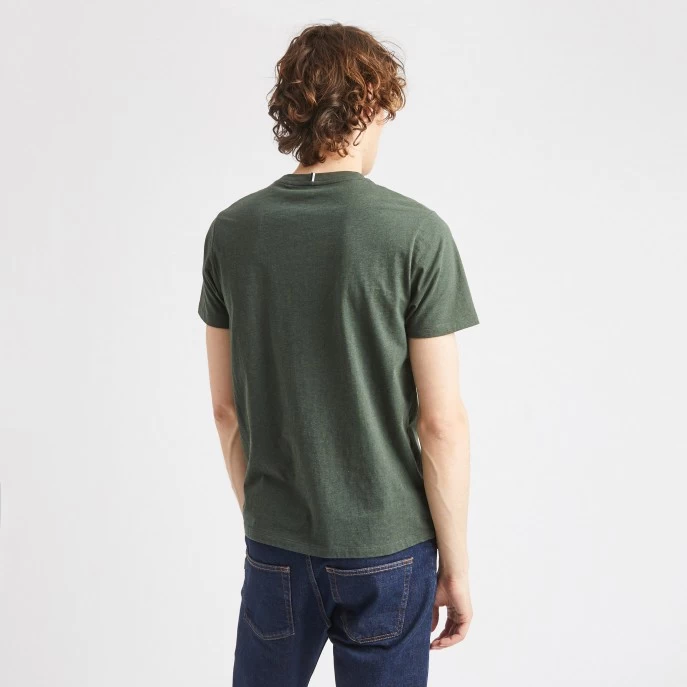 Le t-shirt OLONNE vert, à col rond, a été pensé par notre studio comme un incontournable du vestiaire, avec sa poche poitrine. Sa coupe est droite et classique.